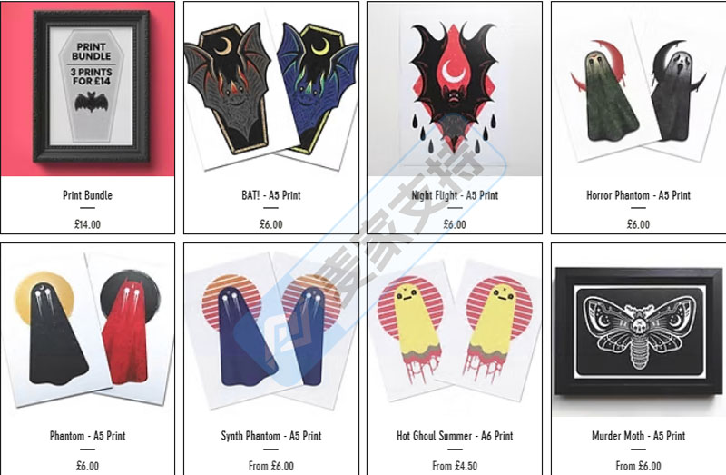 Neil Hampton的灵感来源丰富多样,流行文化的鲜活元素、神秘学蕴含的深邃奥秘、恐怖电影营造的惊悚氛围,甚至蝙蝠等神秘生物,都能在其笔下创作出带有复古、恐怖或神秘学色彩的作品。Neil Hampton的作品涵盖木刻版画、刺绣贴片、徽章、印刷品以及各类配饰,既有着哥特式的暗黑与华丽,又融入了现代艺术的时尚感,深受艺术爱好者与潮流人士喜爱。
