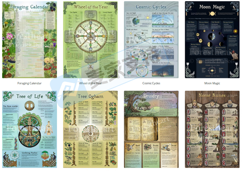 Yannick Dubois的作品深受德鲁伊信仰和自然灵性的启发,以Tree Wisdom系列闻名,认为艺术创作是与树灵共同沟通的过程 。代表作包括生命之树、海报、Ogham树木字母卡片、祭坛布以及反映凯尔特节日的年度之轮设计 。