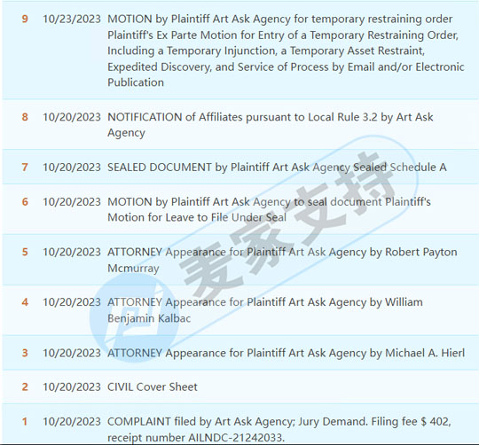 | 2023/10/5 | 2023-cv-14536 | HSP | ASSASSIN’S CREED 刺客信条 |