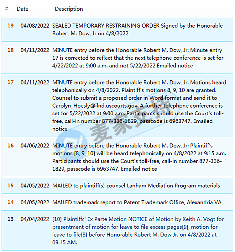 感谢您的阅读,今天的分享到此结束。麦家支持将持续为您带来最新侵权快讯。更多精彩内容可关注微信公众平台—『麦家支持』,即时自助查看您美国案件最新走向,是否缺席判决以及其他卖家和解应诉反诉情况(实时同步美国司法案件系统数据)。如有资金被冻结的卖家需要诉讼、和解方面的法律援助可以在微信公众号里联系我们,我们将为您提供最优质的法律咨询服务。