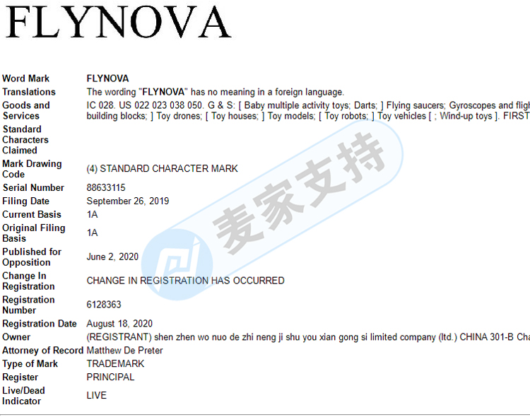 原告品牌:FLYNOVA 指尖飞行陀螺